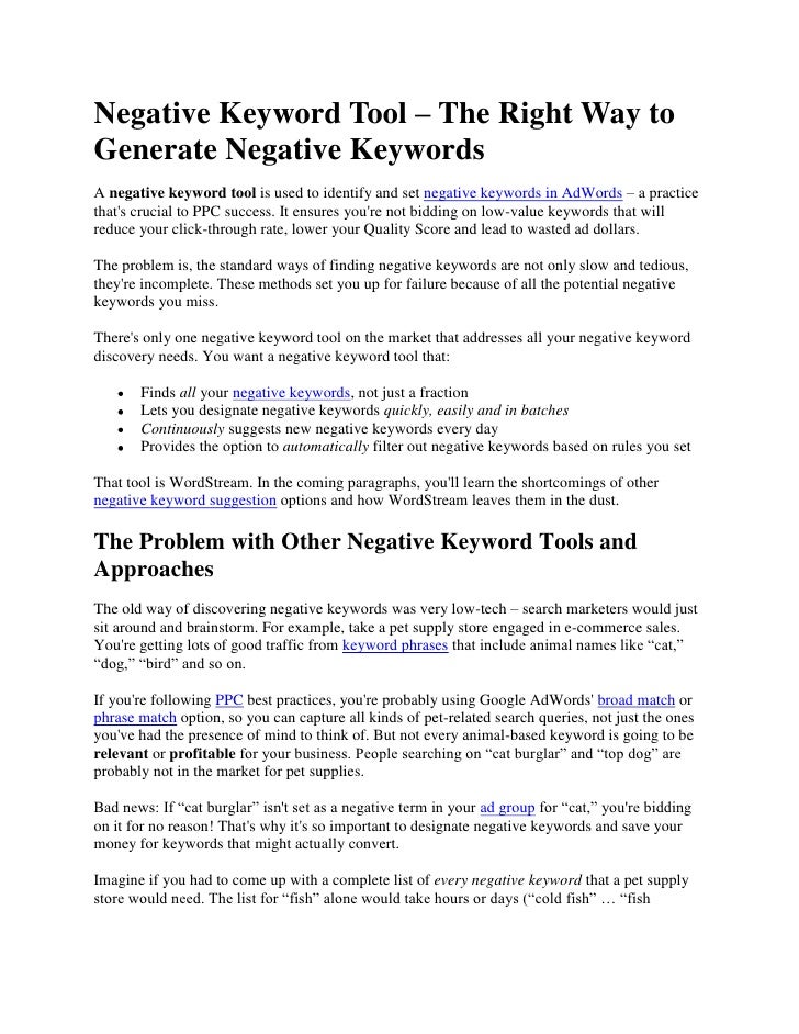 free negative keyword tool wordstream